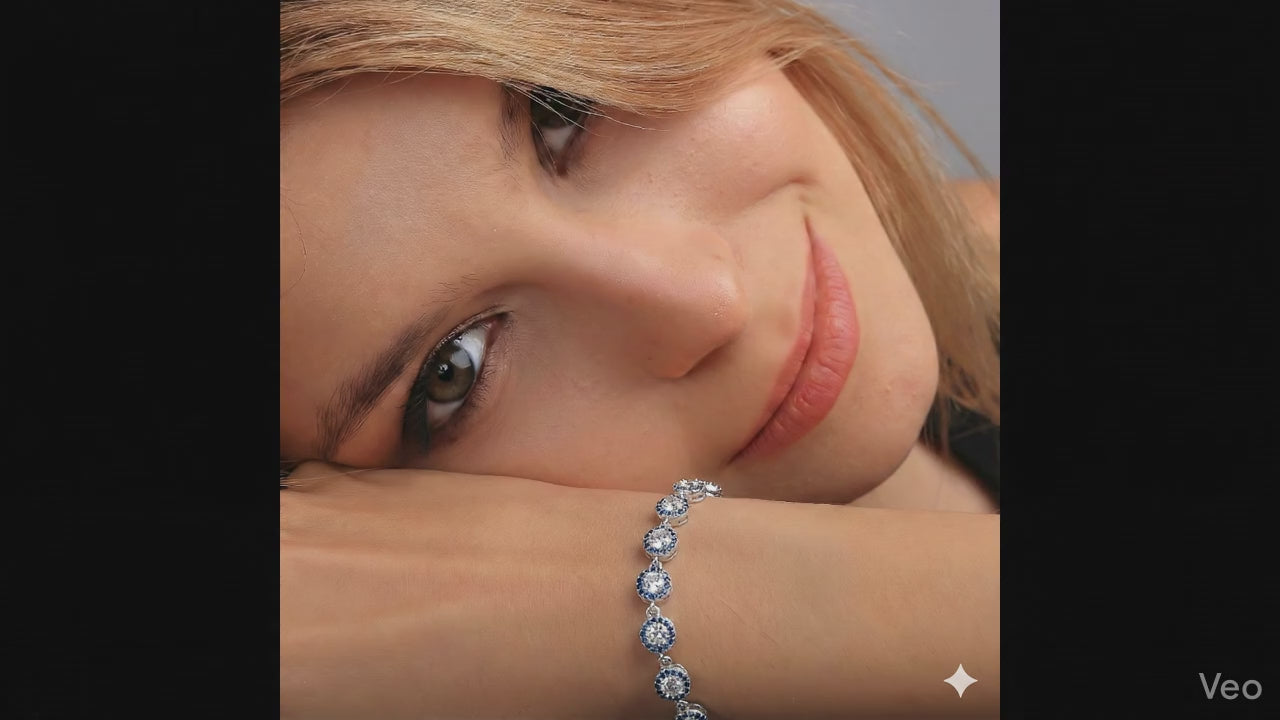 925 Sterling Silver Blue & White CZ Tennis Bracelet